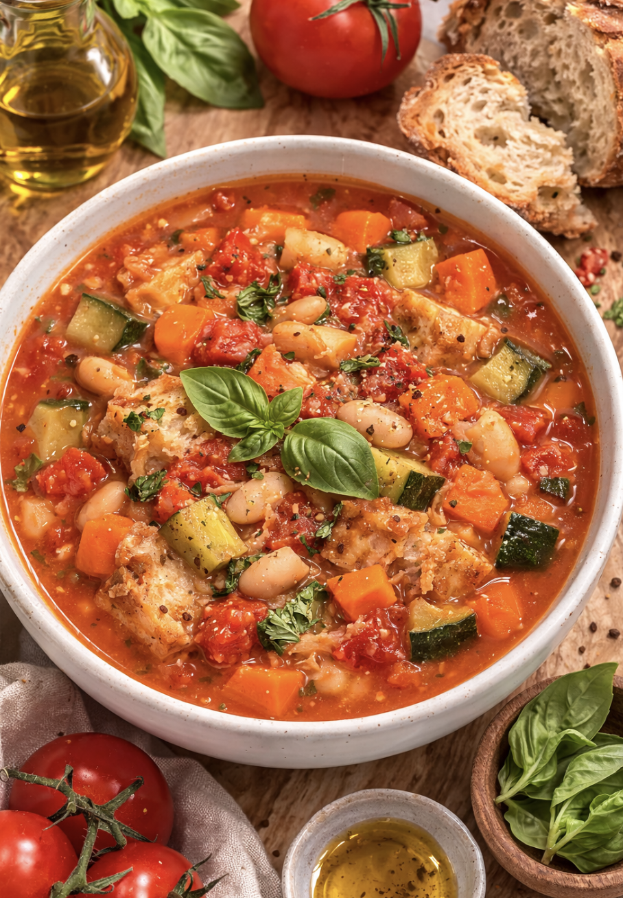 Die Kombination aus Gemüse, weißen Bohnen und altbackenem Brot sorgt für eine besonders sättigende und herzhafte Mahlzeit mit rustikalem Charakter. Durch die langsame Zubereitung verbinden sich die Zutaten zu einem aromatischen, vollmundigen Eintopf, der perfekt für kalte Tage geeignet ist.