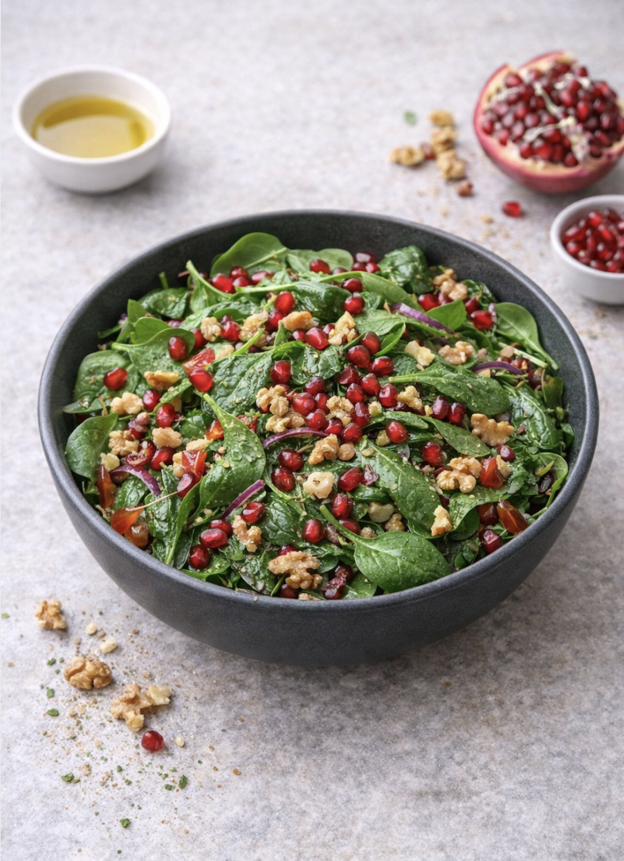 Spinat-Salat mit Granatapfel – Frisch, knackig & voller Vitamine
