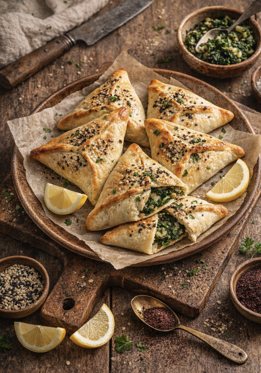 Spinat-Zwiebel-Fatayer – Knusprige Teigtaschen mit Spinat