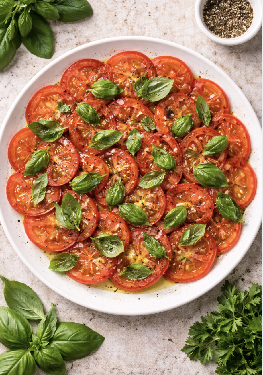 Tomaten-Carpaccio mit Basilikum – italienisches Antipasti Rezept