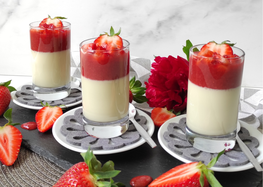 Cremige Vanille-Panna-Cotta mit frischer Erdbeersauce – klassisch, einfach und ideal für Gäste. Ein Dessert, das immer gelingt, edel wirkt und sowohl optisch als auch geschmacklich überzeugt – perfekt für alle, die cremige, klassische Süßspeisen lieben.